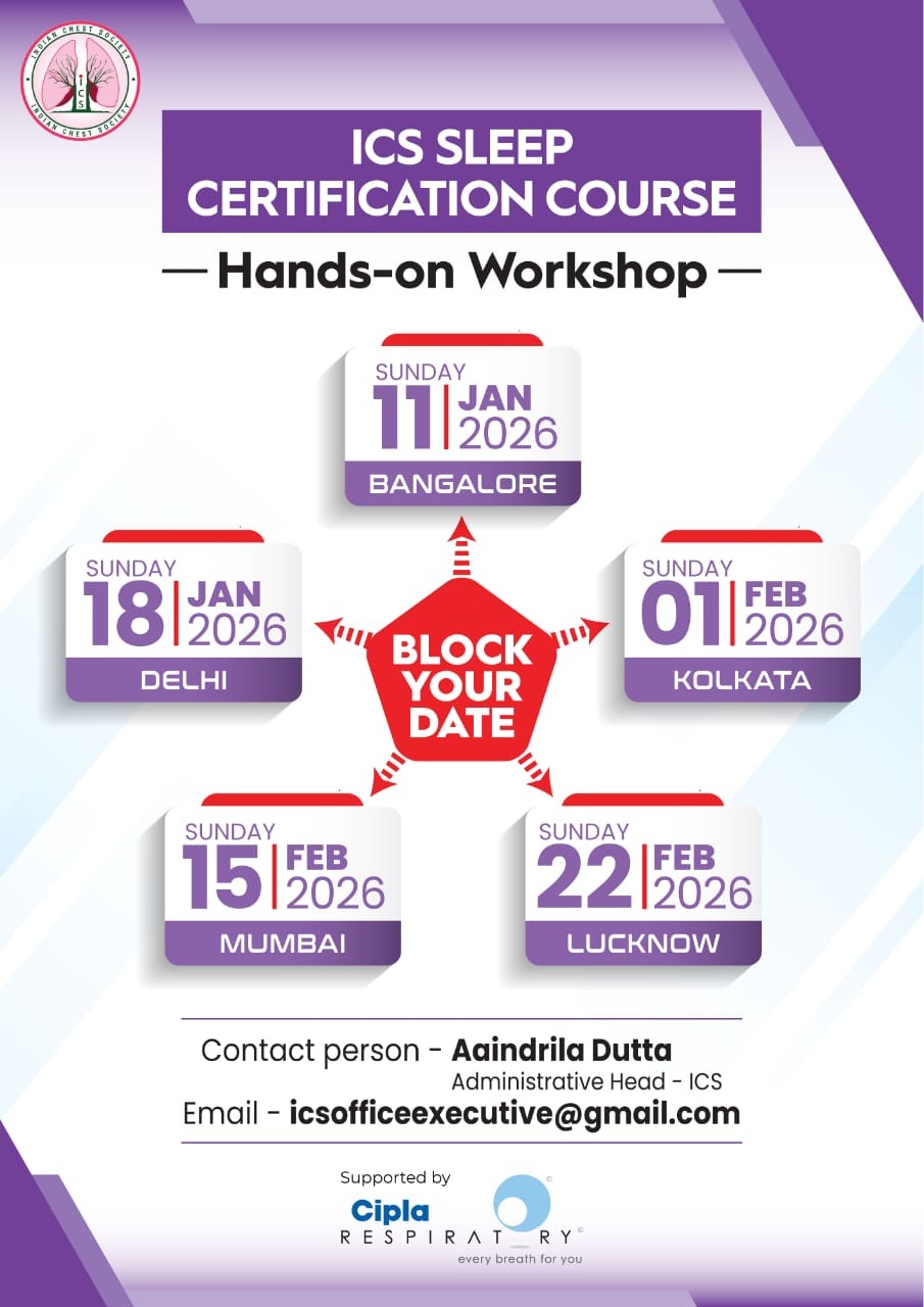 Indian Chest Society is the organization of qualified Chest Physicians and physicians interested in the field of Respiratory medicine. We are a non-profit making organization devoted to research, academic, educational and patient welfare activities in respiratory medicine.